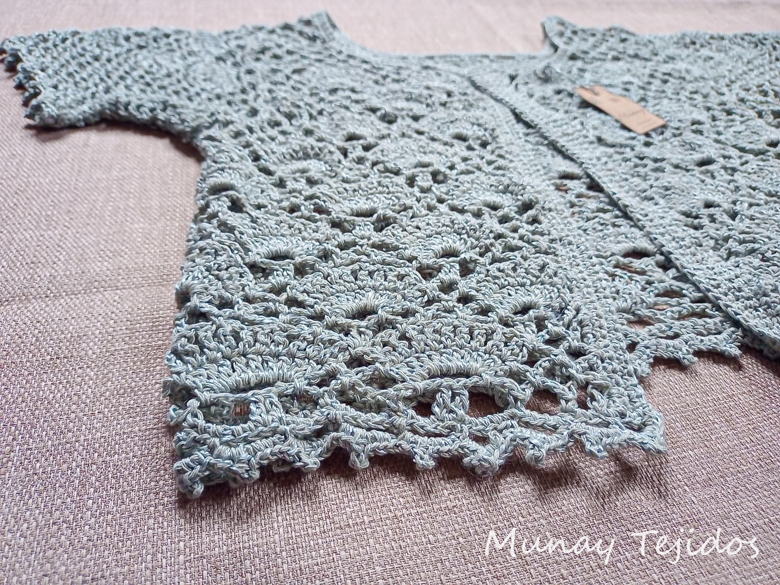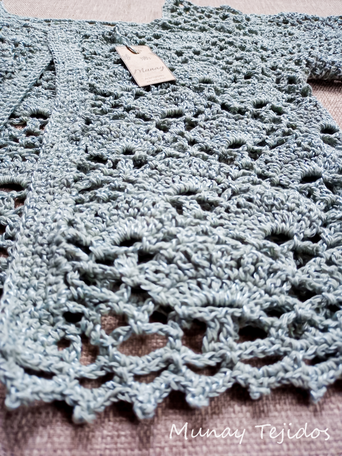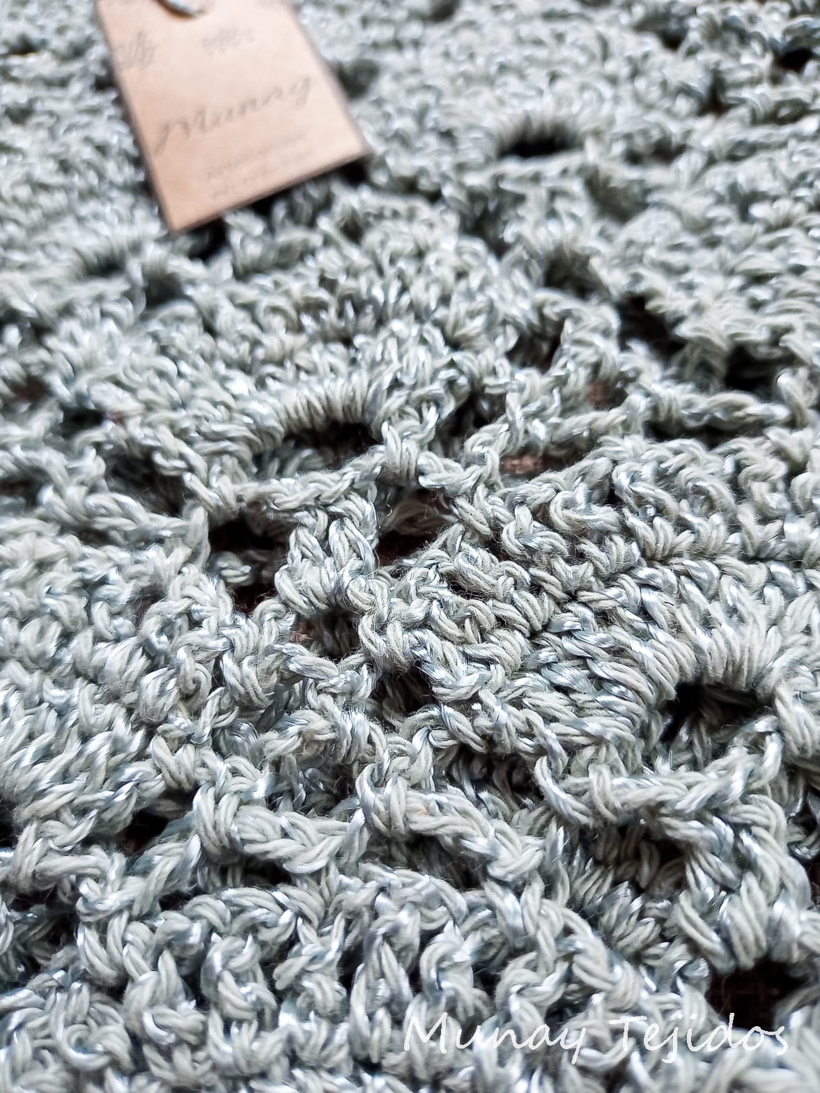 Elaborada a partir de hilo de algodón y seda acrílica en crochet.